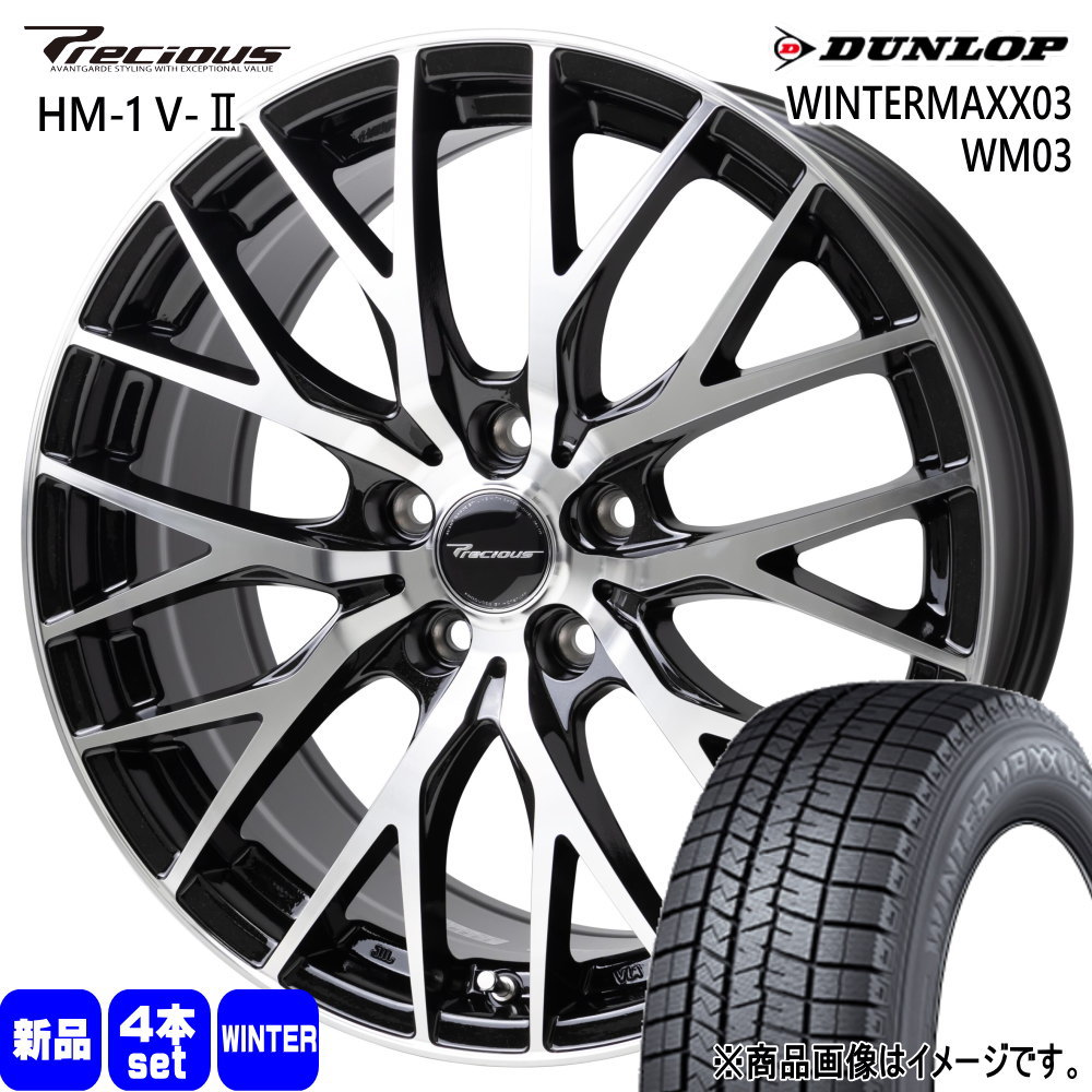 数量1= 冬用 スタッドレスタイヤホイールセット 4本SET 1台分 (組付け・バランス込み)・HOT STUFF CORPORATION(ホットスタッフコーポレーション)・Precious HM-1 V2(プレシャス HM1 V2)・メタリックブラックポリッシュ・19×8.0J+45 5H 114.3P・60度 テーパー座 / M12,M14ボルト,ナット対応・VIA,JWL 規格適合品・DUN...